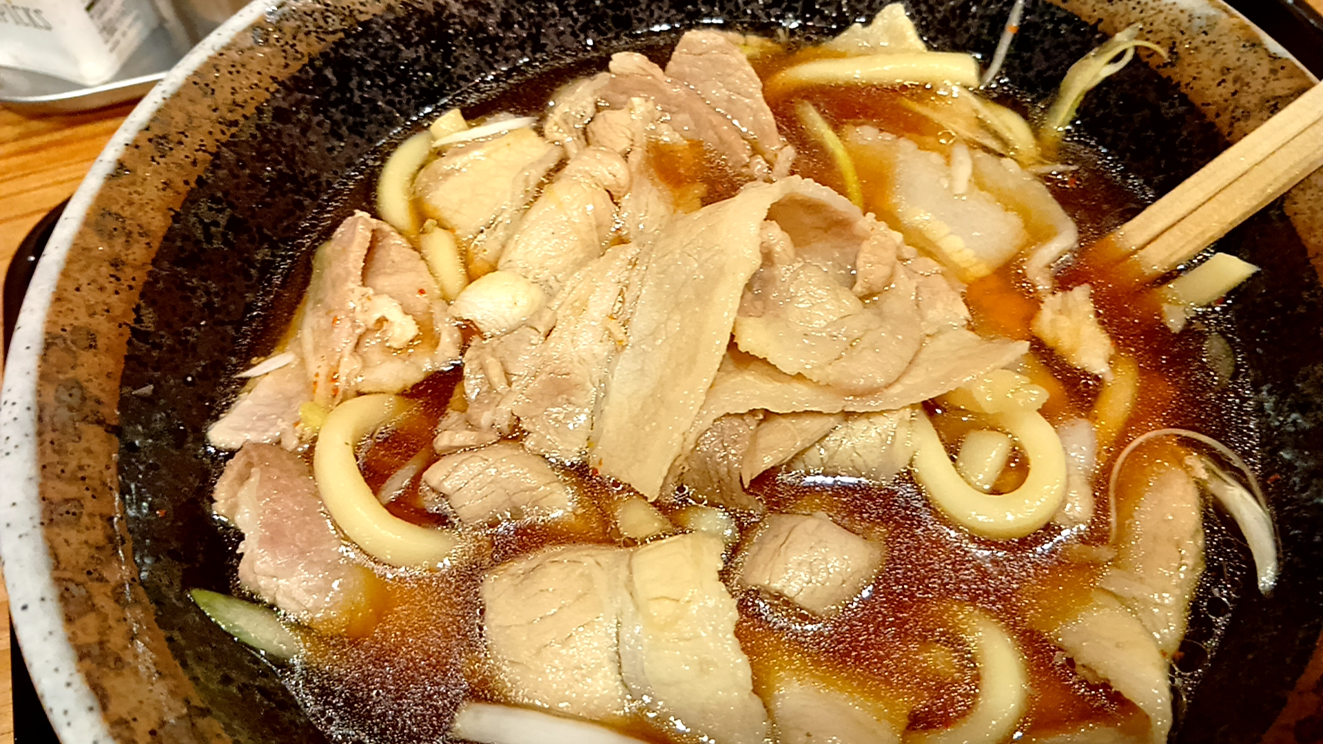 恐らく、うどん(麺)本数より豚肉の枚数の方が多い!
