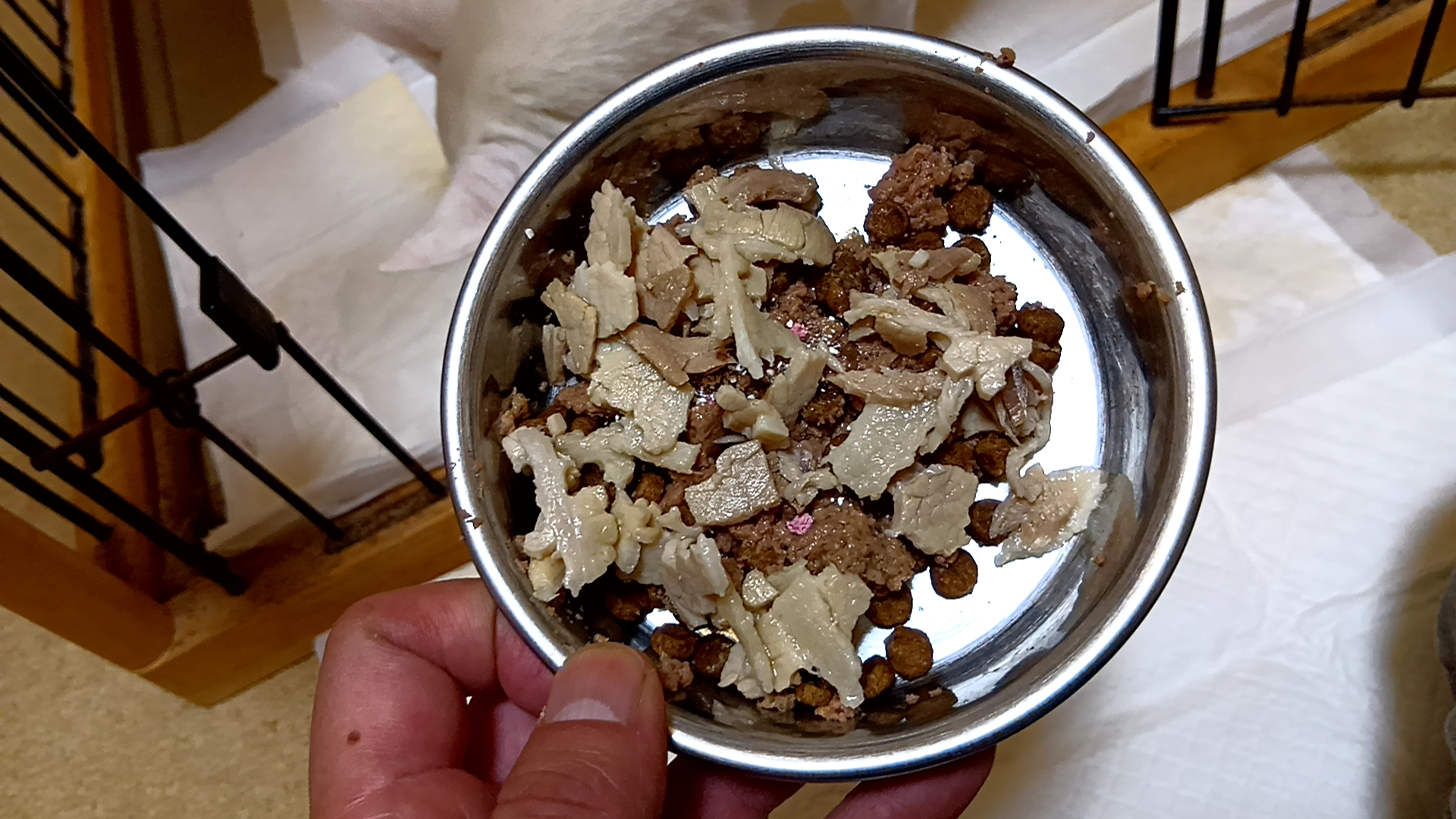 仕方なく、ドッグフードの上に、豚しゃぶを乗せて給餌した。