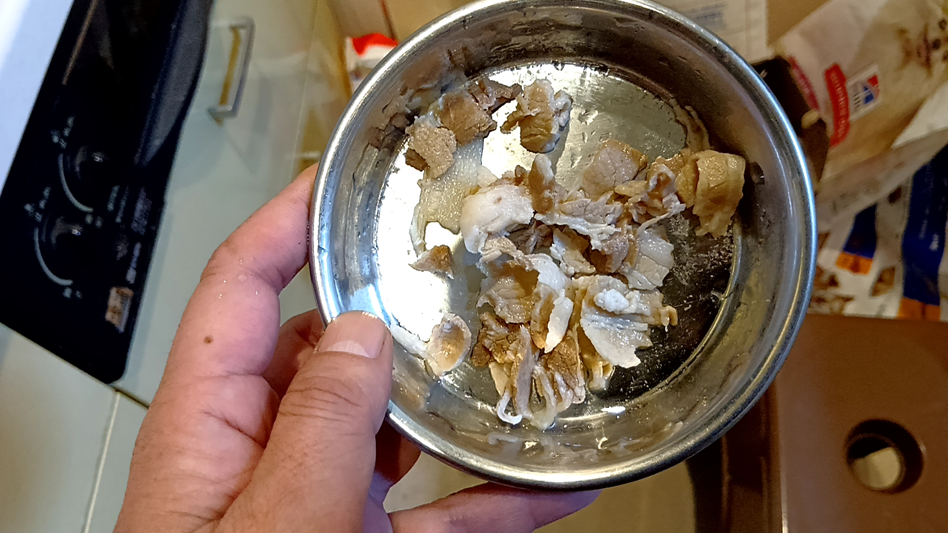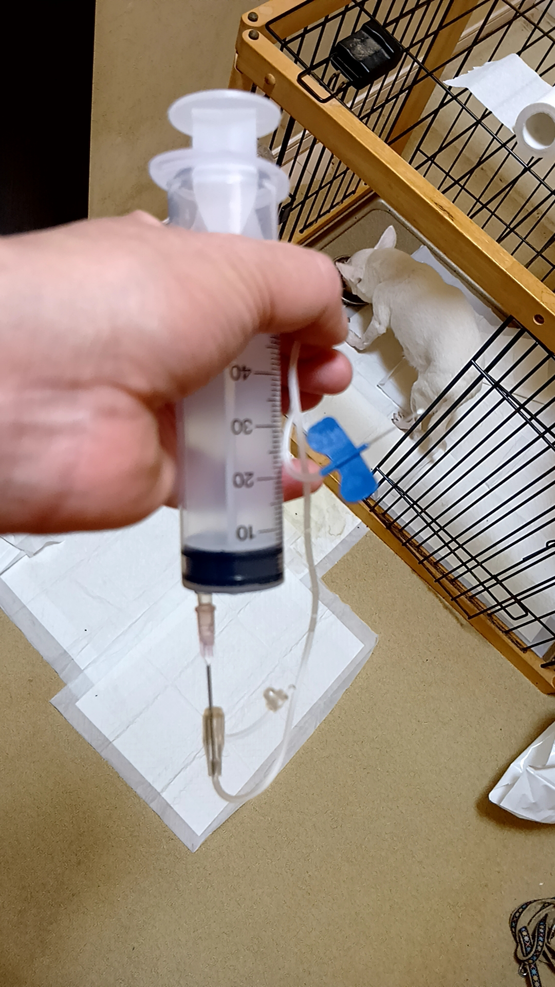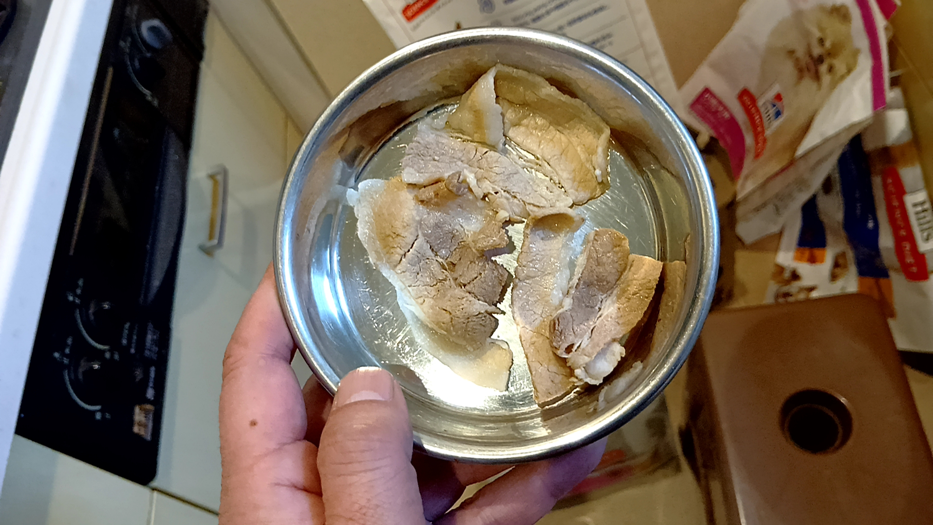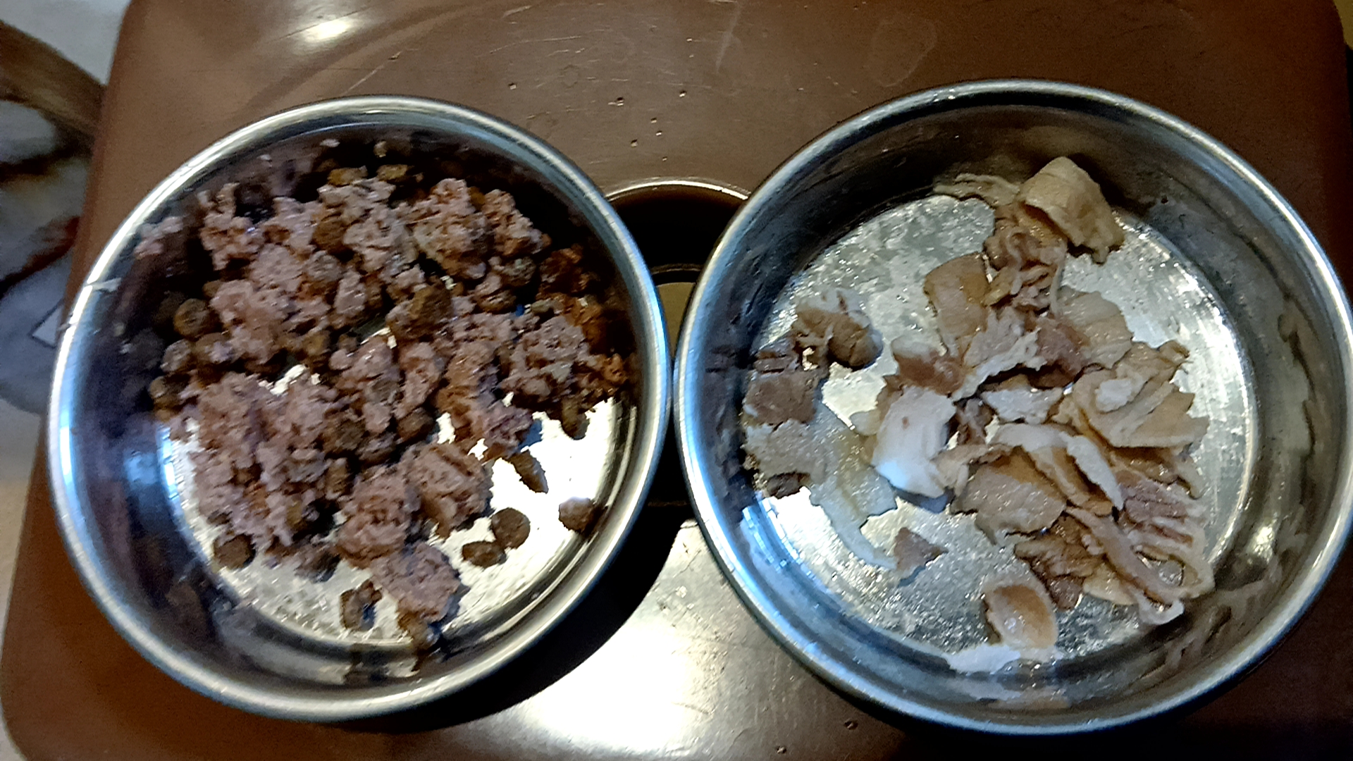 ドライフードとウェットフードを食べ残したので、ウェットフードだけは手で給餌した。