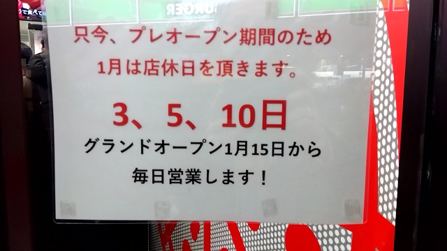椎名町店はプレオープンなので、臨時休業が1月に3日間ある。