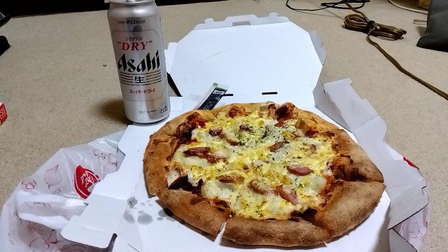 いや、ピザハットのお供にビール。