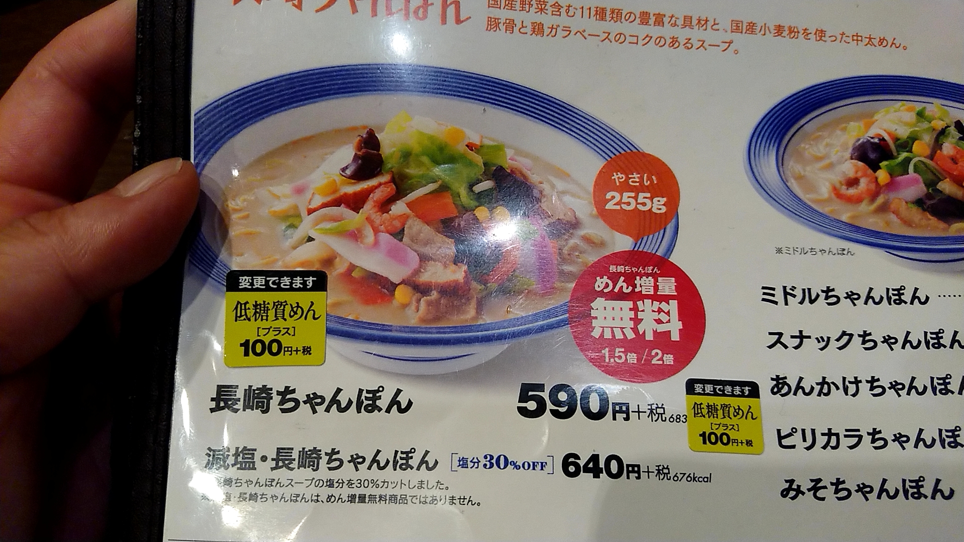 ①長崎ちゃんぽん(1.5倍)590円(税込637円)