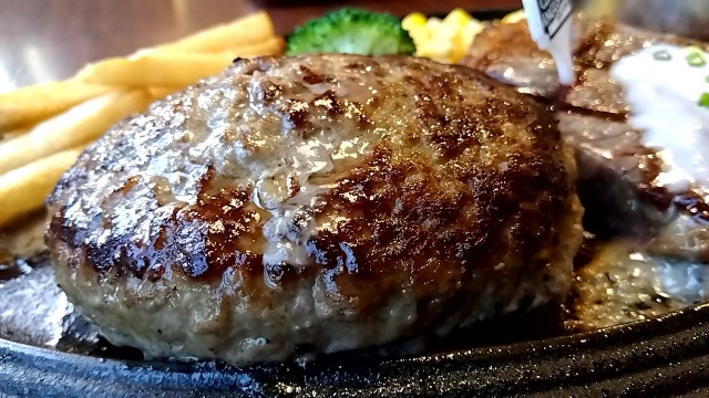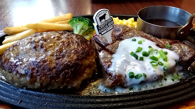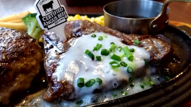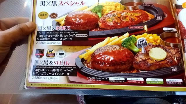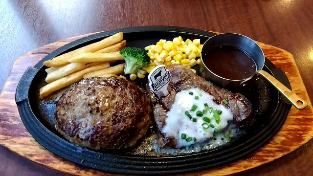 190gレギュラー黒X黒ハンバーグ(ガーリックソース)&100gアンガスサーロインステーキ(ガーリッククリームソース)2948円