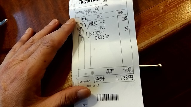 【ロイヤルホスト 江古田店】第11回 レギュラー黒X黒ハンバーグ190g&アンガスサーロインステーキ100g&ビーフジャワカレー大盛330g=620g ★2023/10/30(月)16:55 2023/10/30