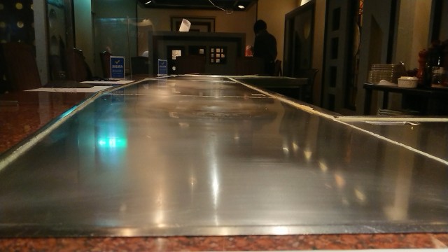 正式なメニュー名が「海老と海鮮のソテー」名ので、裏で作ったものが運ばれてくると思っていたら…目の前で、鉄板焼きだよ!