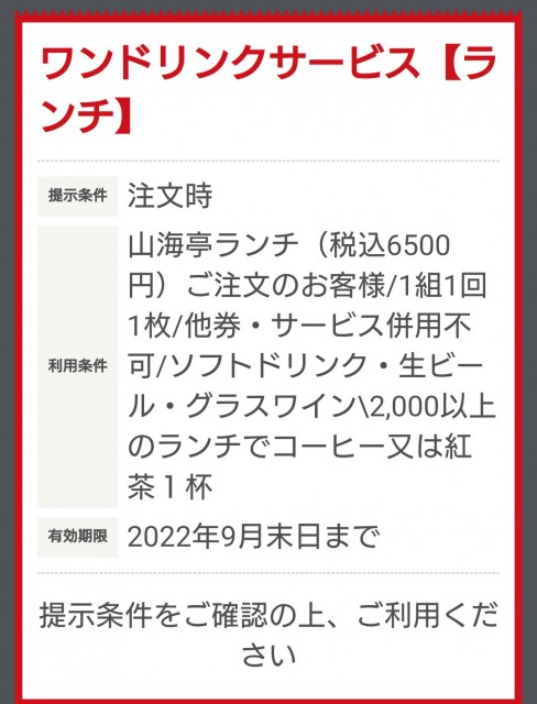 偶然にも、オレが選んだ山海亭ランチだけホットペッパーグルメのドリンクサービスが使えた!