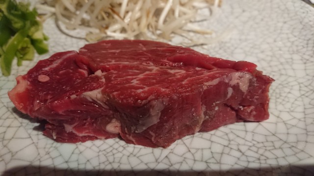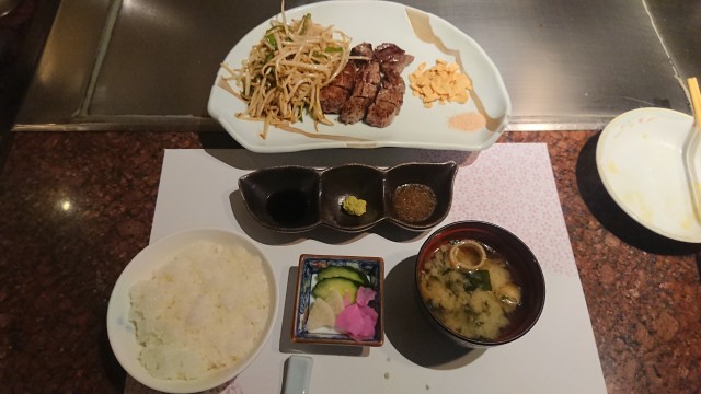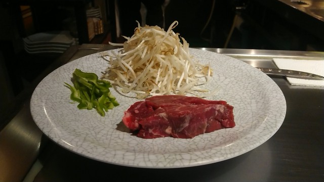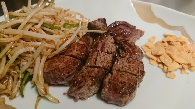 もやしとピーマンと北海道産牛ヒレステーキ鉄板焼き(ミディアムレア)