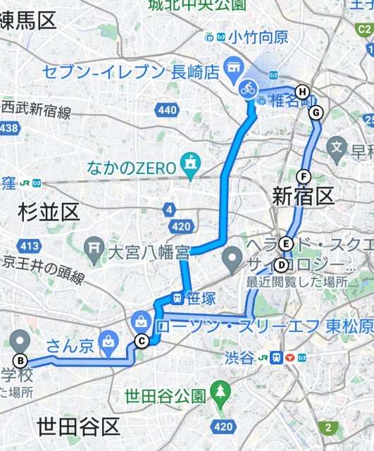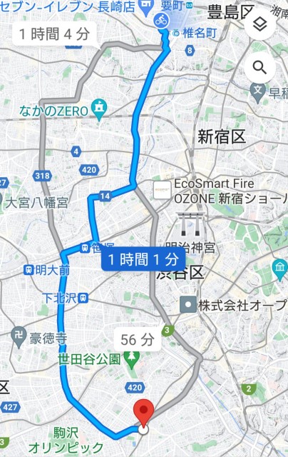 新宿某所12:40→ホテルメトロポリタン(池袋西口)13:03 片道5.2km