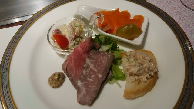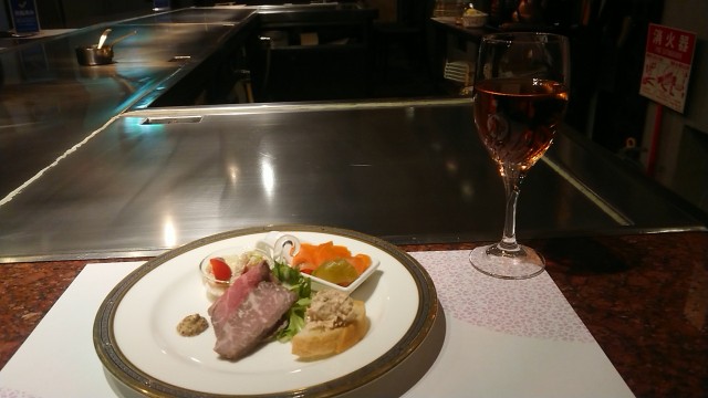 ご覧の通り、アラカルトメニューもあるので、コースはよそうと思ったが、シーフードの鉄板焼きが捨てがたいので、いつも通りにコースメニューを頼むことにした。