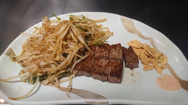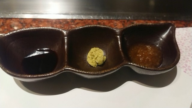 ソースはヒマラヤ岩塩、ニンニクチップの他、ニンニク醤油、わさび、オニオンソース