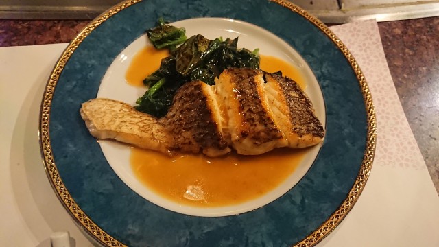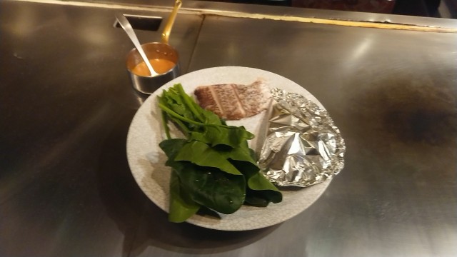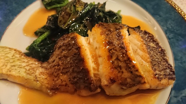②愛媛県産真鯛とほうれん草の鉄板焼き(バター醤油仕立てソテー) 2300円