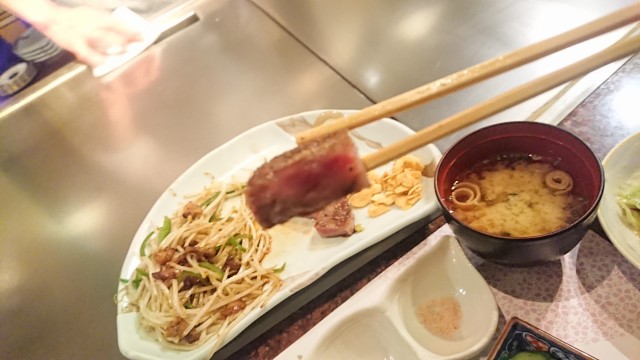 ③青森県産サーロインステーキ120g・もやしとピーマンの鉄板焼き(ランチセット) 4200円