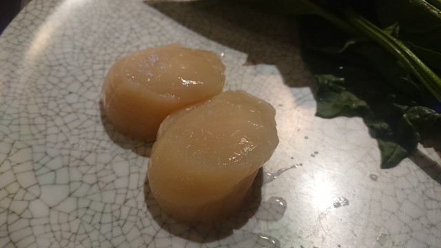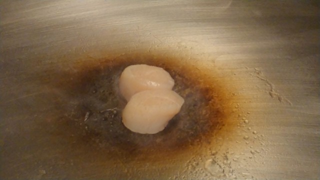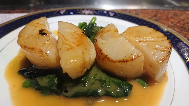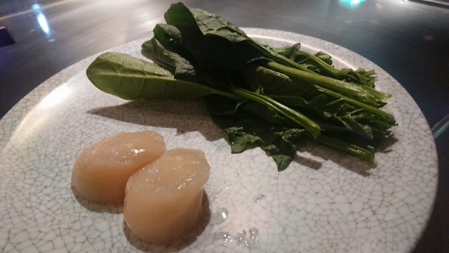 ②(旧)国産帆立貝2個とほうれん草の鉄板焼き 2000円