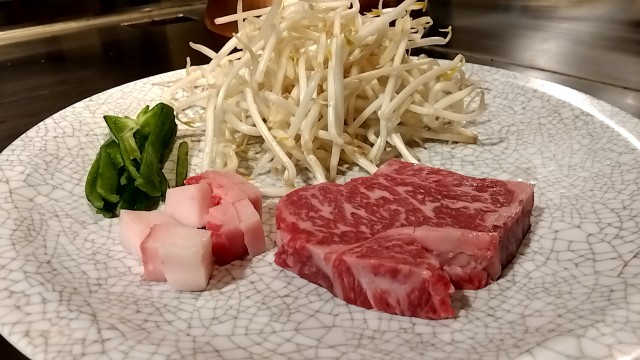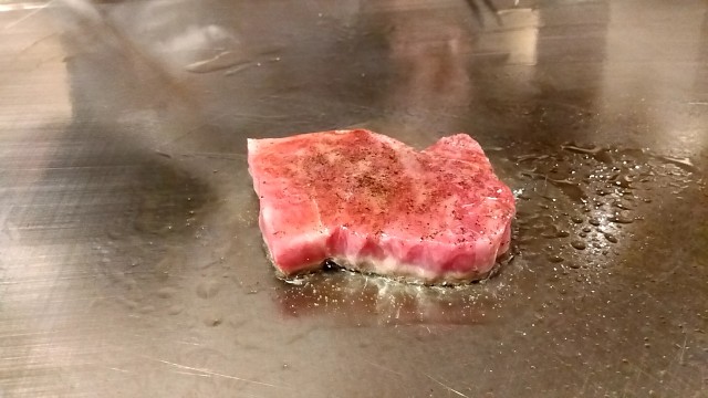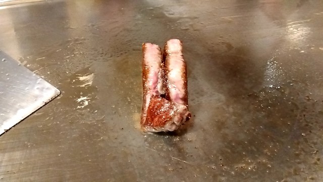 ⑤茨城県産国産牛サーロインステーキ ミディアムレア鉄板焼