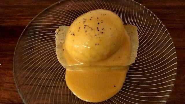 オマール海老の頭から出汁をとり、アカエビの身を使っている。