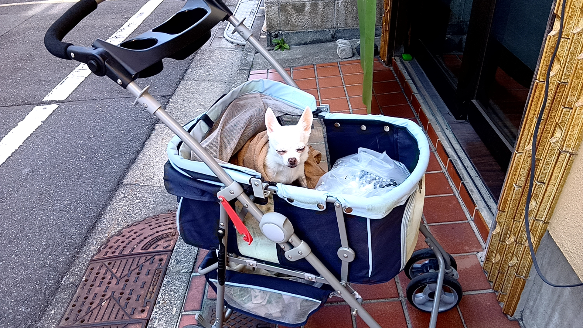 プリンスのカート座席に置いたら匂いを嗅いでいた