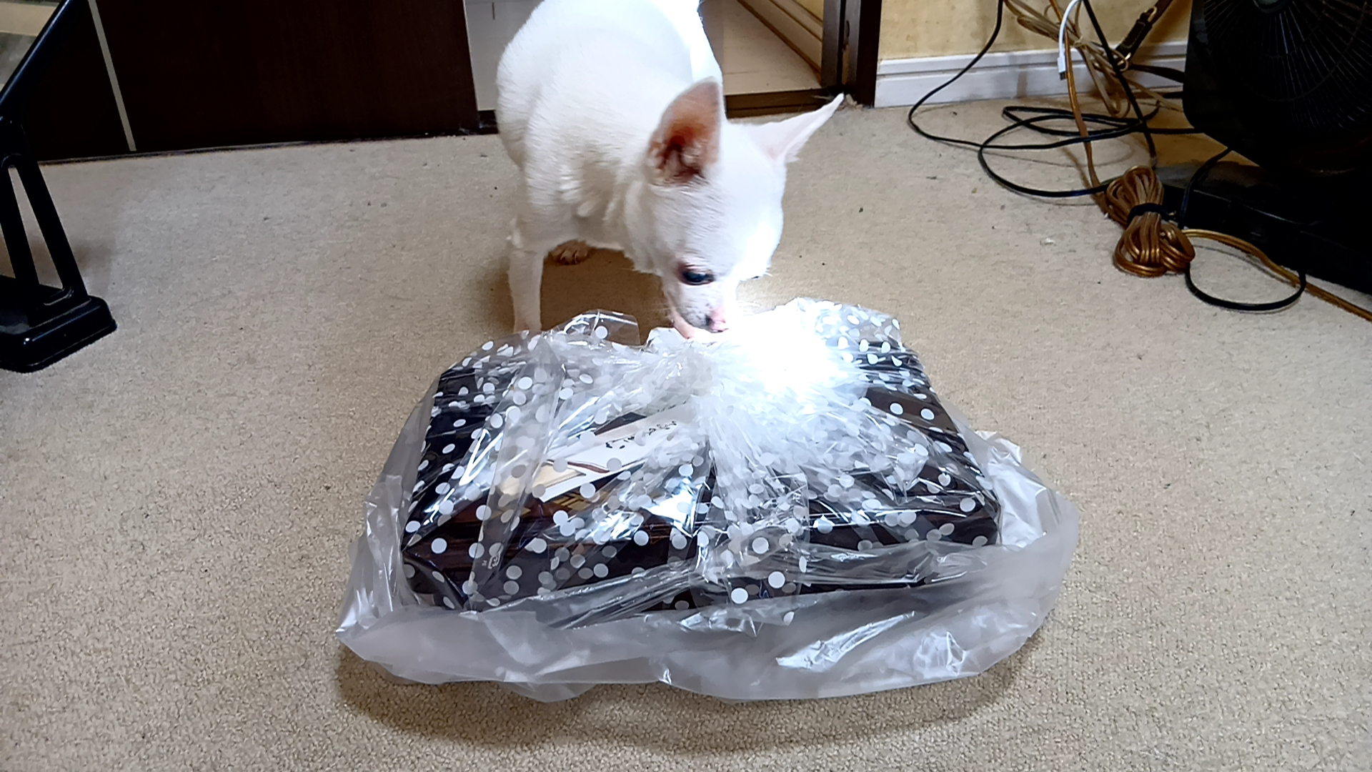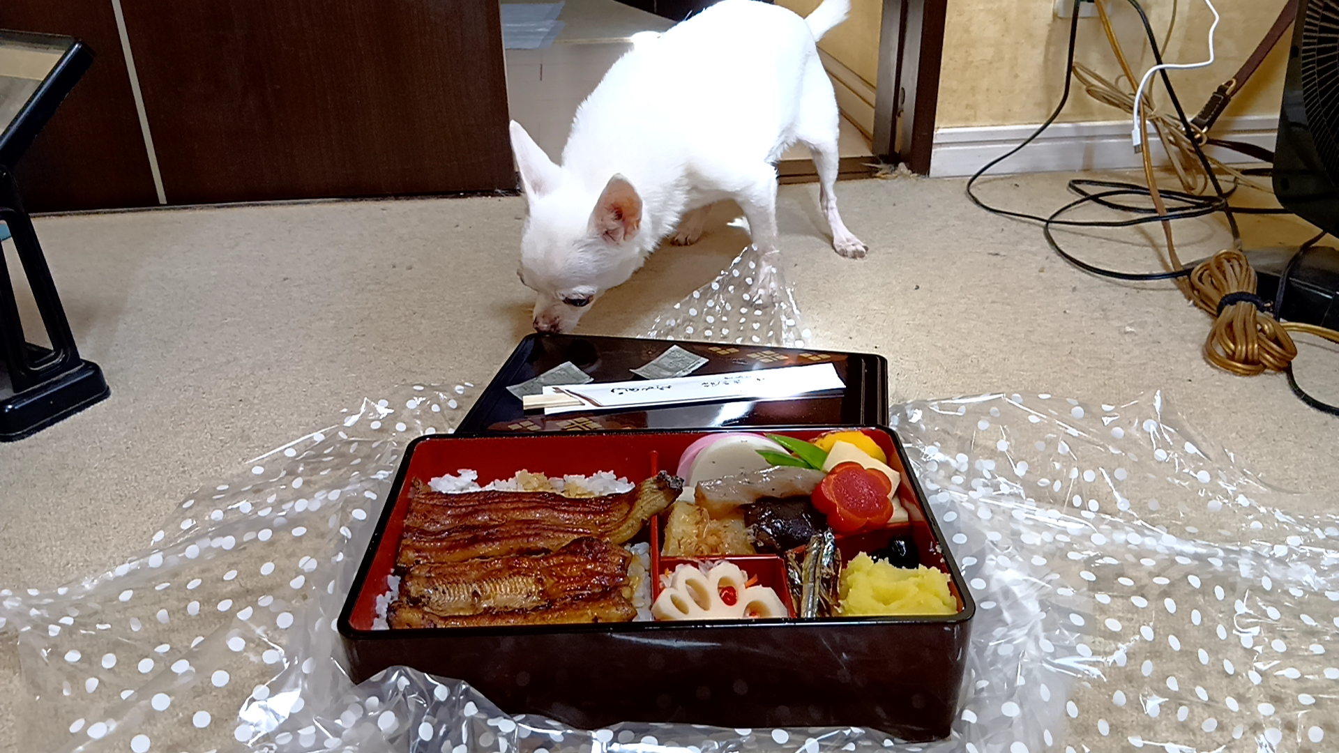 おせちセット撮影中、プリンスがうろついてワンワン吠えるので邪魔!www
