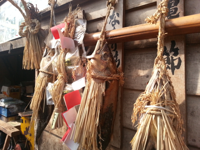 かつおが干されています。