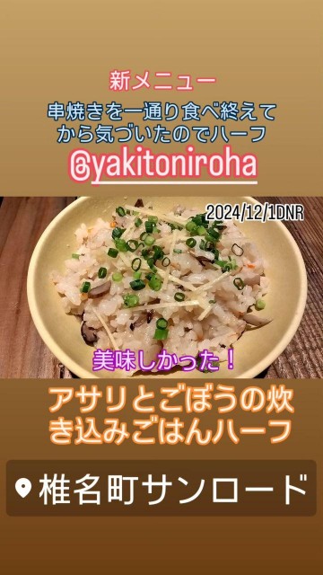 【やきとんいろは】第42回 新メニュー「アサリとごぼうの炊き込みごはん」 ★2024/12/1(日)18:09 2024/12/01