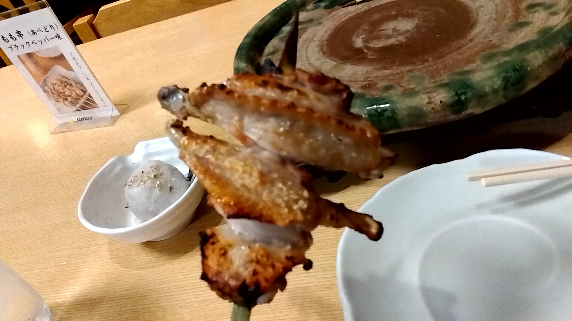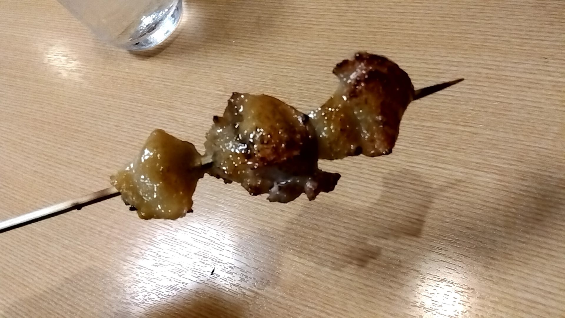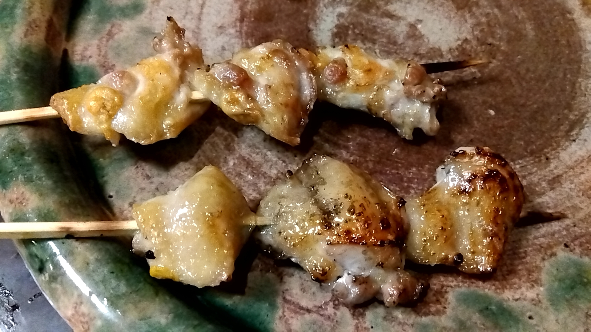 前回(利用2回目)は、オーダー内容を予めメモ書きしたものを持ってきて、注文の際に彼(配膳スタッフ)に手渡したのに、2本オーダーした軍鶏全てで1本転記漏れされてしまい、最後の締めのときに出して欲しいと強くお願いしていた島田うどんを先出しされ、追っかけで作り忘れた串まで出てきたから味わって食べられなかった」