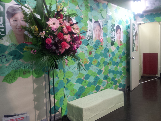 投開票日の小池百合子選挙事務所。