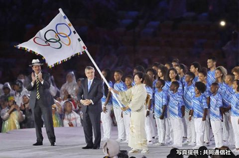 小池百合子さんはリオでフラッグ受領。