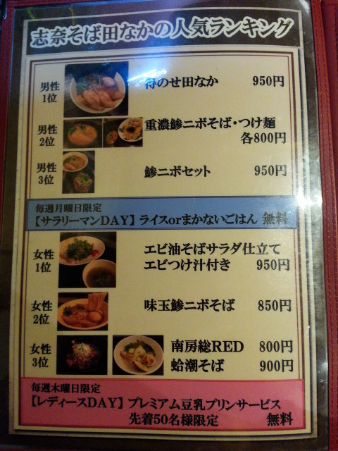 志奈そば田なか 東池袋(向原)