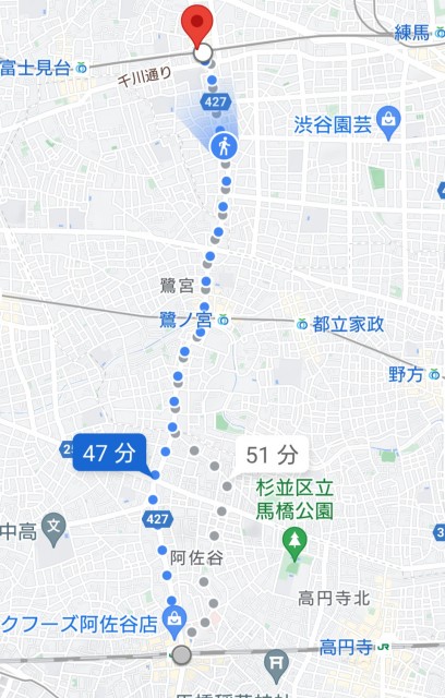 オレは阿佐ヶ谷駅、荻窪駅エリアに行くときは、千川通りで中村橋駅交差点に出て中杉通りを使う。