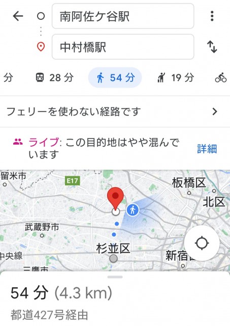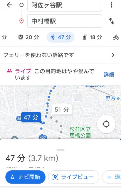 自転車利用で西武池袋線中村橋駅からJR阿佐ヶ谷駅までの所要時間は15分弱。