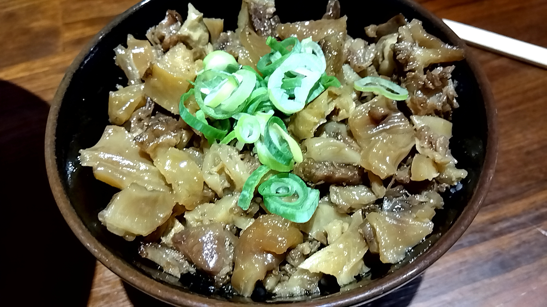 いつも明太しか食べてなかったので、お店の顔の牛すじ丼を食べた。