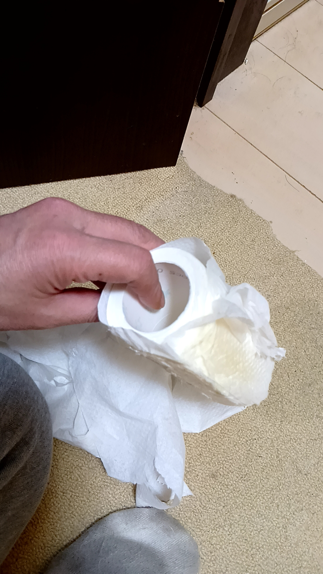 そして、最悪なのは、半分以上残っていたトイレットペーパーロールにもおしっこをかけていた。