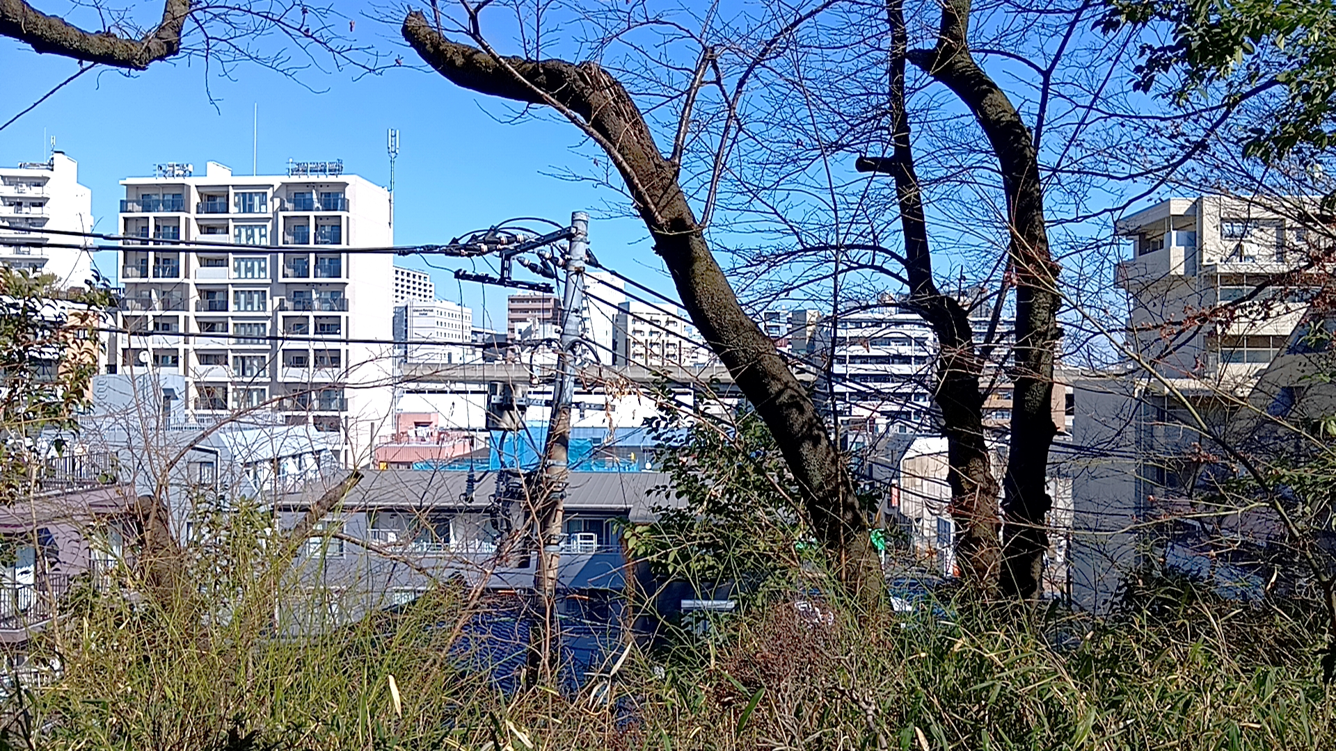 稲付城跡を含む赤羽台地の急勾配の崖下には稲付川が流れていた。