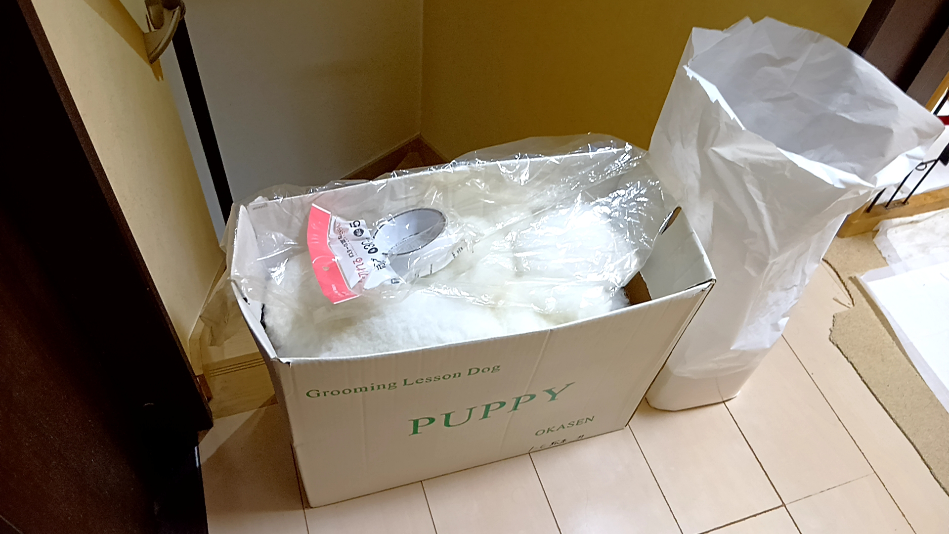 再発防止のため、廊下のみならず犬部屋の電気を常時点灯し、階段の最上段に落ちないよう、簡易の壁を築いた(荷物を置く)
