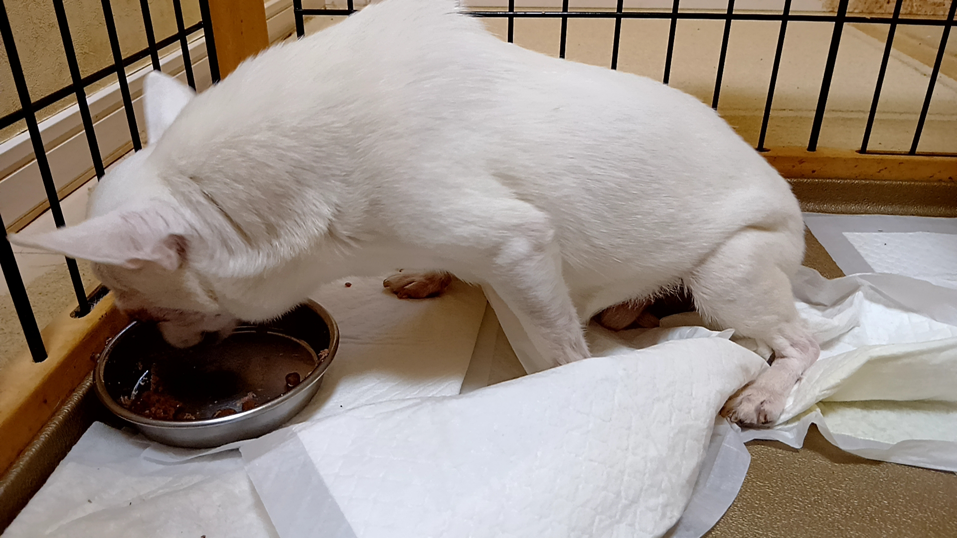 認知症以外にも、腰が落ちるので、特に寝起きは、四足で立ったままご飯が食べれなくなる(オレが腰を持ち上げて保定するか、プリンスが前足だけで立ってご飯を食べるか)