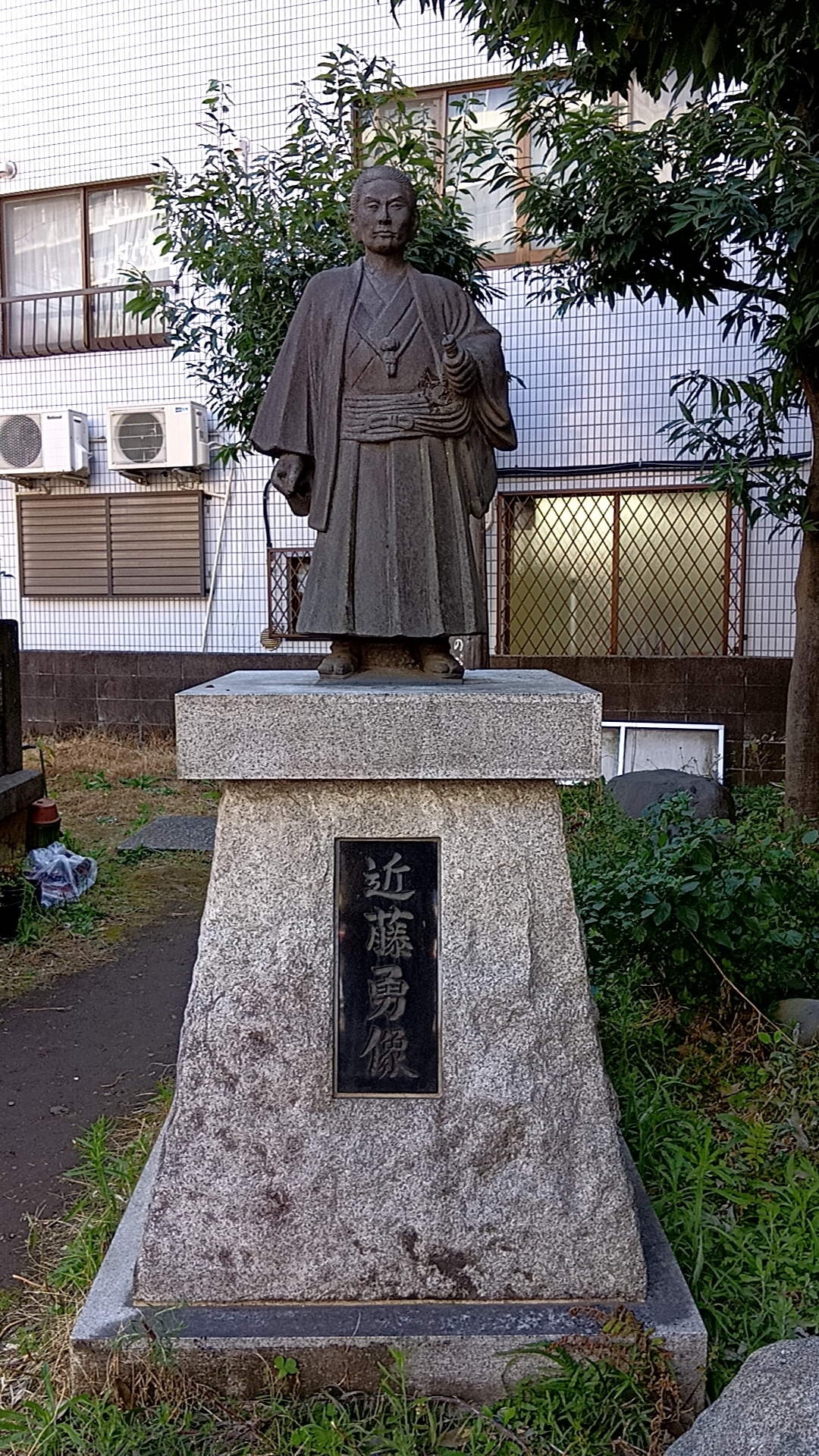 近藤勇が休憩した天台宗長谷山聖天院西光寺(調布市上石原1-28-3)には近藤勇像がある。