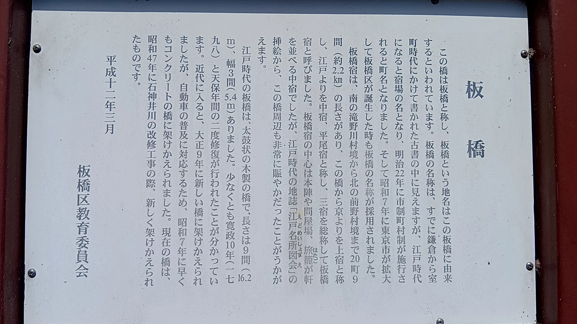 板橋の地名由来はこの橋にあると言われている。