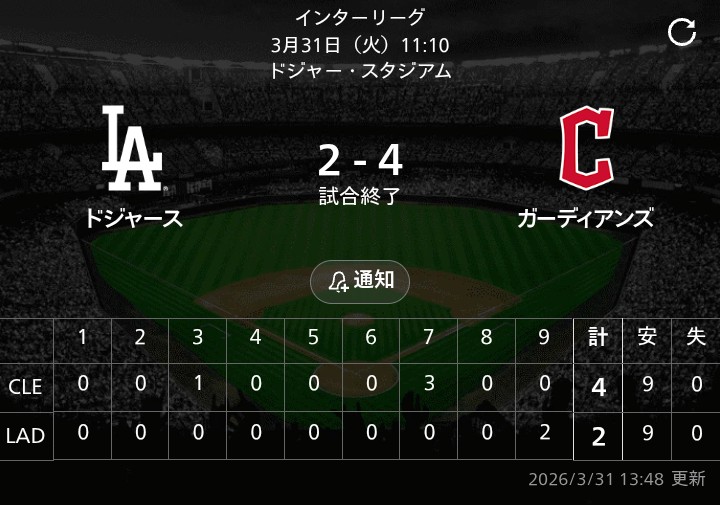 【MLB】佐々木ロキ1敗(ガーディアンズ戦)/2025シルバースラッガー賞授与式(大谷翔平&カイル・タッカー&ドジャースチーム) ★2026/3/31(火)13:45 2026/03/31