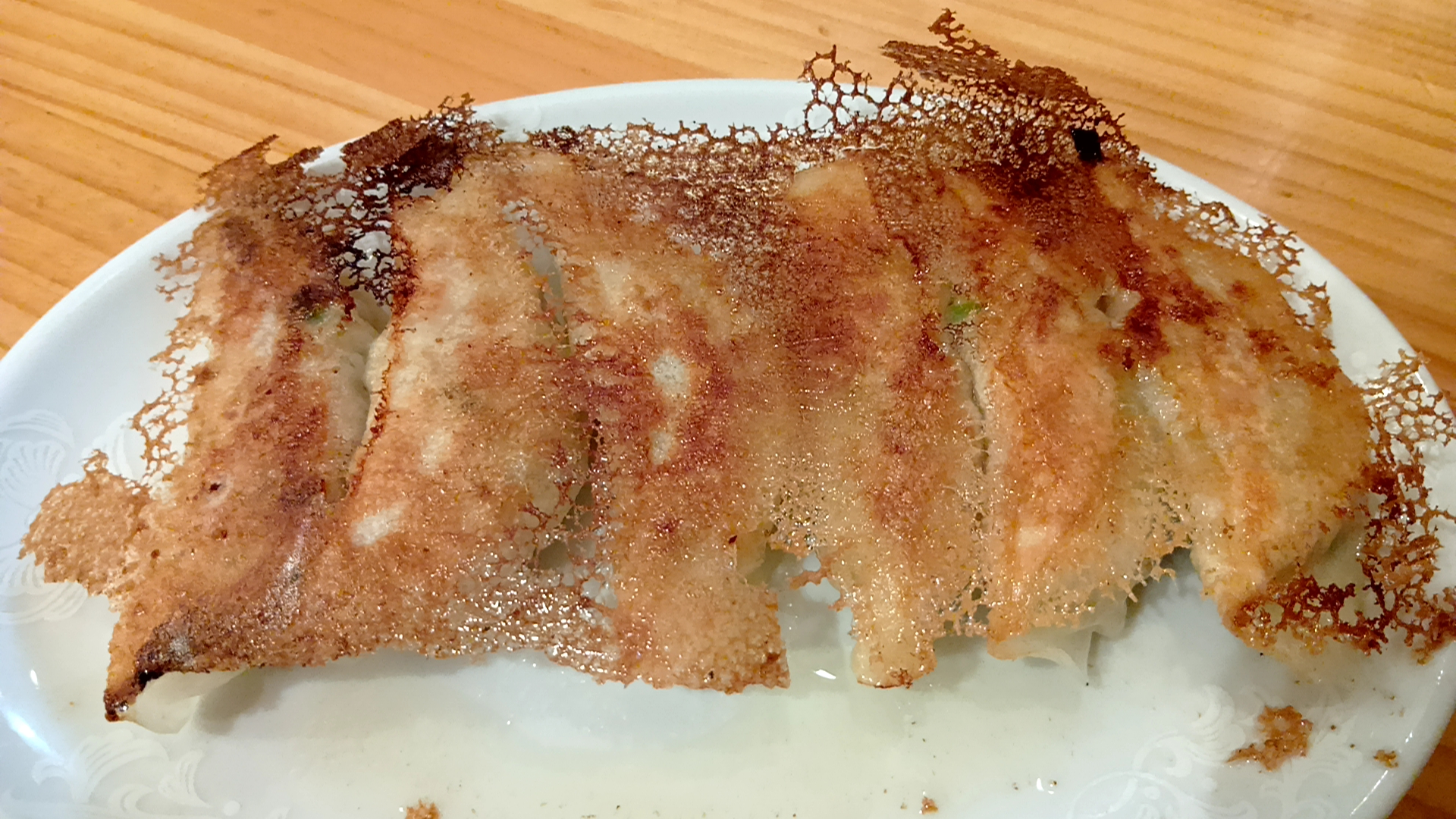 ②羽根つき焼餃子6個 400円(50円値上げ)