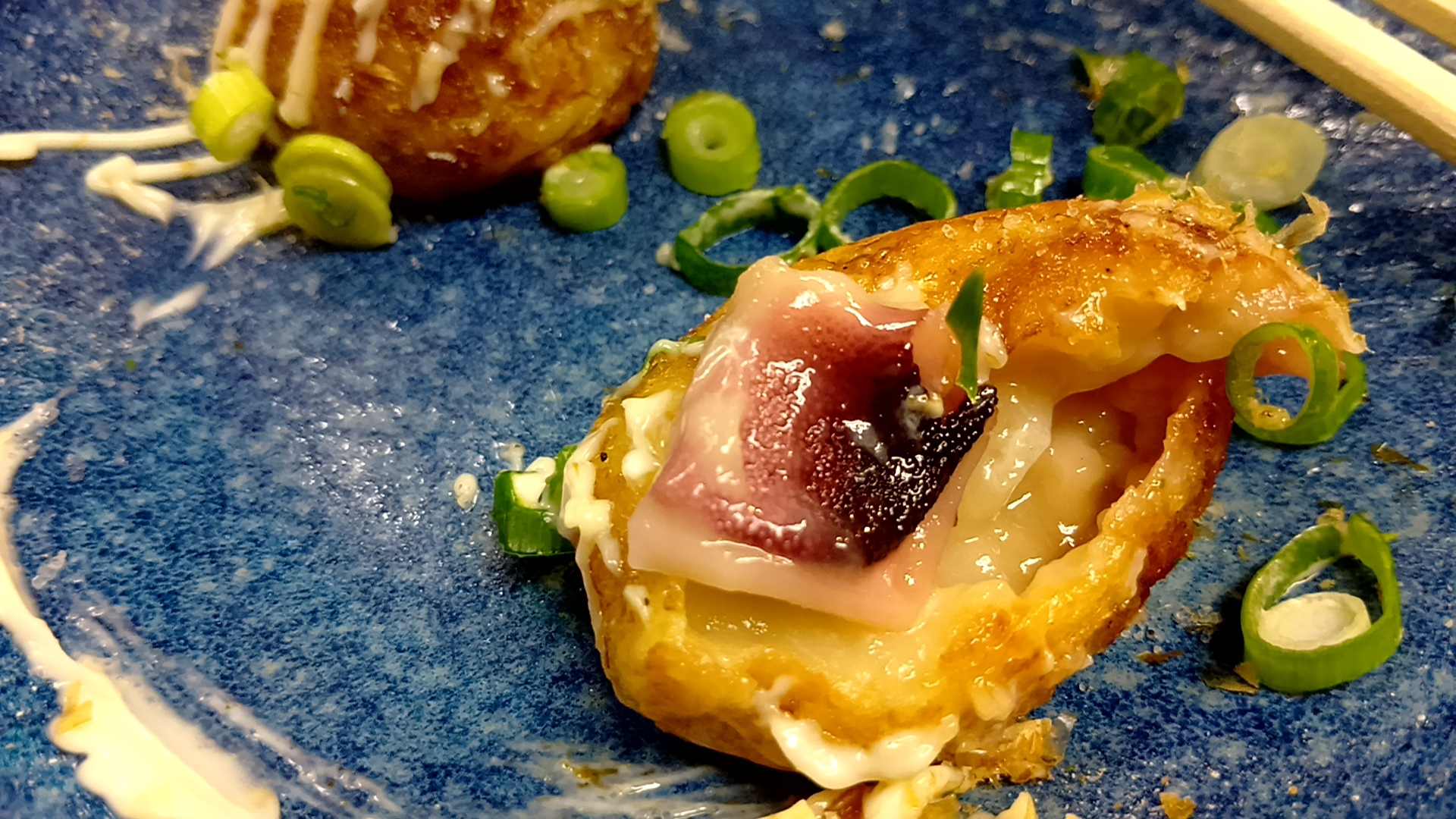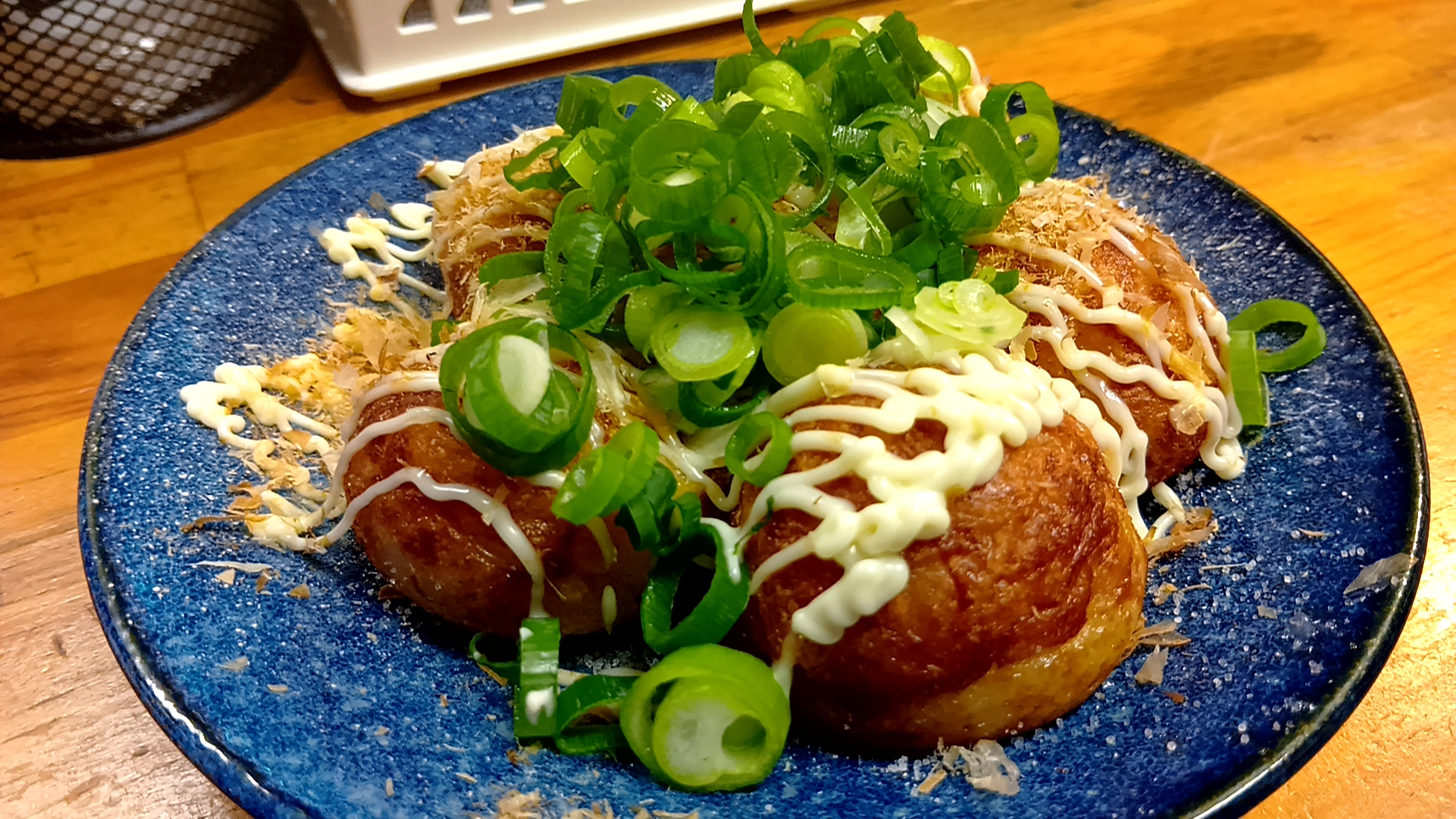 塩味のたこ焼きに、マヨネーズと九条ねぎがオン。