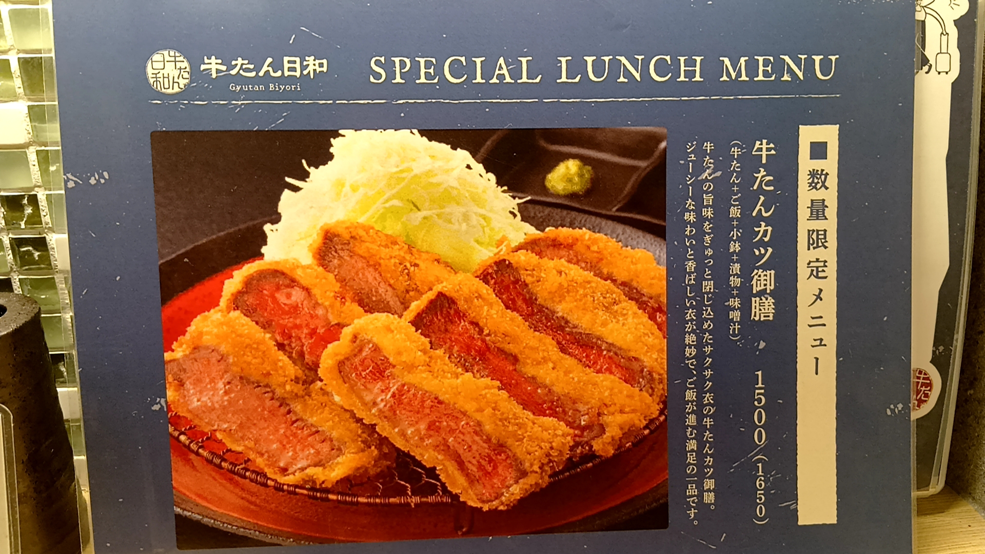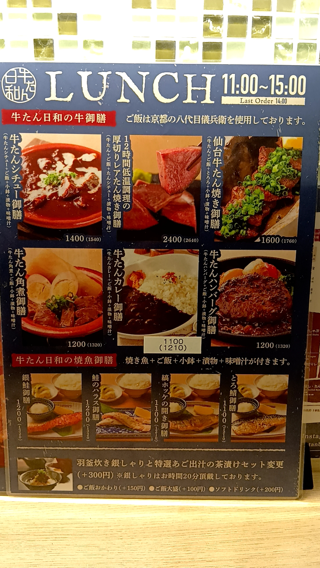 来る前は「牛たんハンバーグ御膳」をオーダーする予定だったが「牛たんカツ御膳」を見たら「カツの方がいいや!」って考え始めて、その結果、王道「仙台牛たん焼き御膳」に落ち着いた!