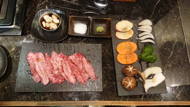 野菜1順目とカルビ焼き
