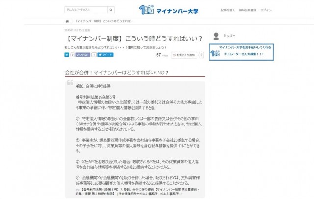 当該企業の運営サイト「マイナンバー大学」で、私のブログ上のマイナンバーの「利用」(委託又は合併・事業承継等)の法令解釈が転載されています。