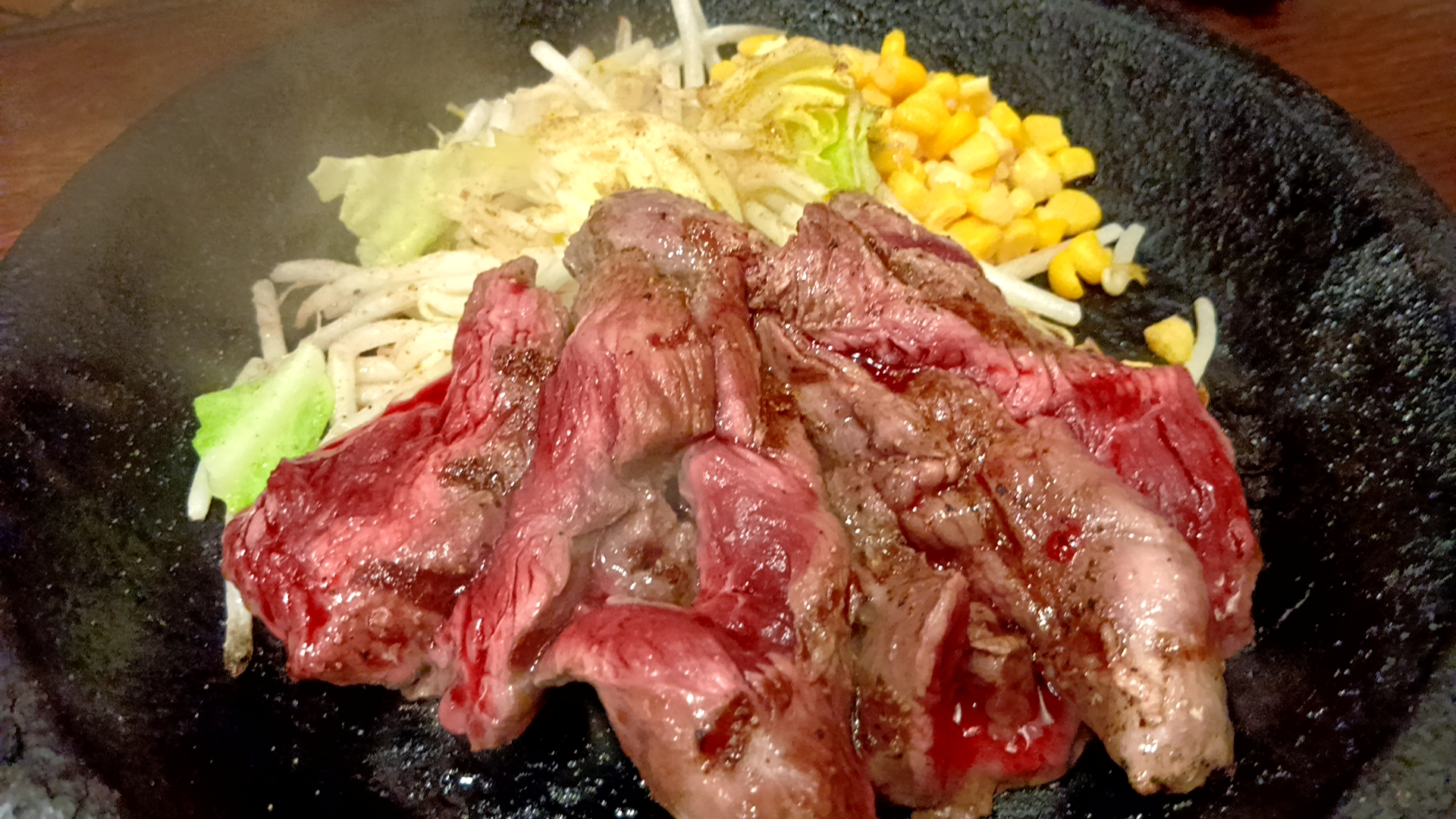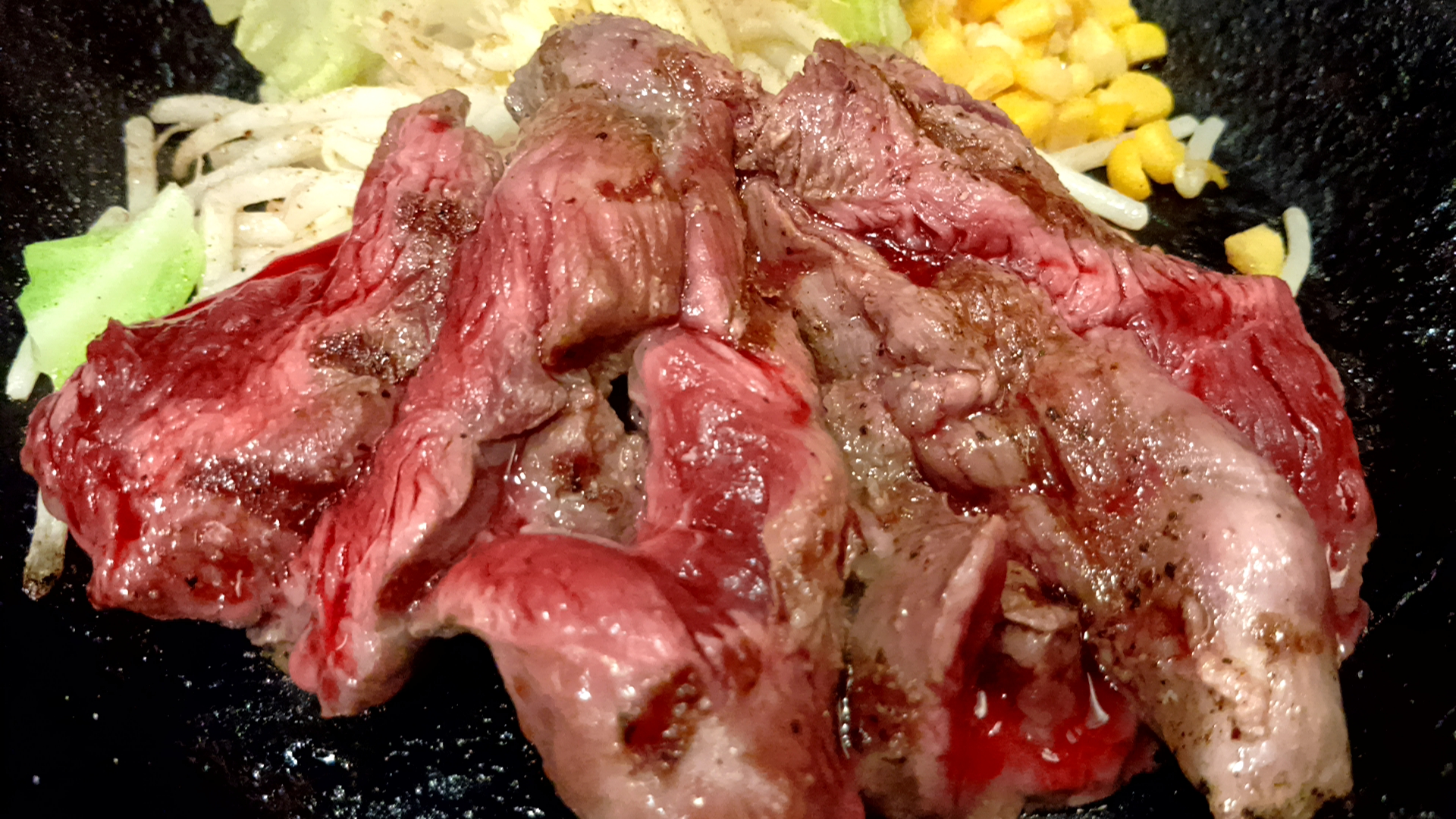 ①カンガルー肉200g&キャベツともやし炒め&コーン