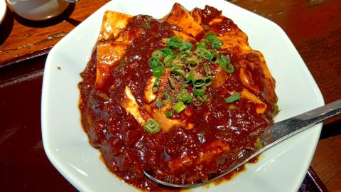 ①麻婆豆腐(客の好みに配慮し甘くも辛くもない)