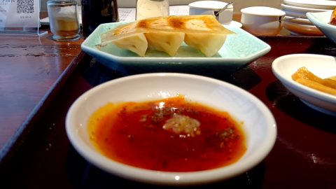 ②羽根つき焼餃子3ケ(客の好みに配慮しニンニク・ニラ不使用)